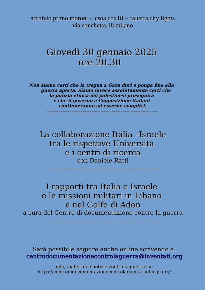 It will also be possible to follow online by writing to: centrodocumentazionecontrolaguerra@inventati.org