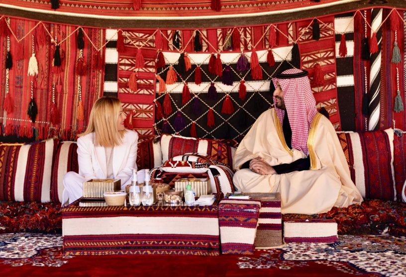 Al centro dell’incontro svoltosi alla corte del principe saudita c’erano infatti, ancora una volta, i finanziamenti all’industria bellica e ad altri settori chiave che, come ha sottolineato Valentino Valentini, viceministro delle Imprese e del Made in Italy, saranno finalizzati soprattutto allo «sviluppo dell’idrogeno verde, alla trasformazione digitale, agli scambi culturali, alla difesa e all’innovazione tecnologica”. Non stupisce dunque né la mancanza di un qualsiasi accenno alle problematiche di Riad con i diritti umani, né la presenza degli amministratori delegati di Leonardo, Roberto Cingolani, di Fincantieri, Pierroberto Folgiero, e di Pirelli, Marco Tronchetti Provera, alla tavola rotonda prevista nel pomeriggio e interamente dedicata all’imprenditoria dei due paesi.