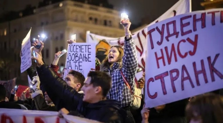 La protesta coinvolge soprattutto gli studenti universitari. Gli studenti hanno reagito alla violenza repressiva con il blocco di numerose facoltà già dal 25 novembre, con il sostegno di numerosi intellettuali e tante associazioni. Le rivendicazioni vanno dalla richiesta di indagini e di punizione per i responsabili del crollo di Novi Sad, la messa a processo dei responsabili della repressione e l’aumento degli stanziamenti per l’istruzione, pesantemente tagliati dal governo.