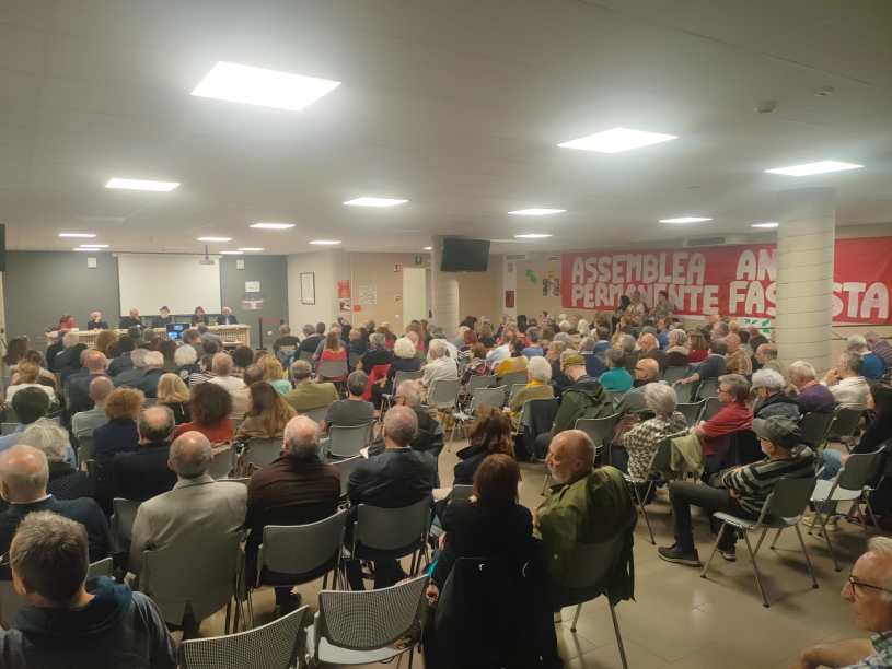 Aula magna piena, ieri sera, all’Istituto Superiore “Mantegna” di via Fura, a Brescia. Circa 250 persone (più un’altra trentina in collegamento on line) hanno partecipato alla presentazione dell’Assemblea Permanente Antifascista, quella specie di “fronte unico” tra partiti, gruppi, sindacati, associazioni della sinistra “radicale” bresciana sorto in seguito alla recrudescenza dell’attività neofascista in città, in provincia e in tutto il paese (ed oltre, purtroppo). Accolti dal preside dell’Istituto, Giovanni Rosa, che ha dato il benvenuto ai partecipanti, hanno animato il dibattito (dopo una breve introduzione di Dino Greco, di Rifondazione Comunista) Moni Ovadia, Antonella Barranca, Saverio Ferrari, Claudia Cernigoi e Domenico Gallo. Più una tavola rotonda che un dibattito, a dire il vero, aperto da Moni Ovadia che, con la solita verve abituale, ha cercato di trattare la storia del sionismo visto come fenomeno sempre più assimilabile al fascismo, soprattutto (ma non solo) sotto la direzione del criminale di guerra Netanyahu. Molto significativo il passaggio in cui il celebre attore ha definito un “coglione” chi ancora crede alla favola dei “due popoli, due stati” (e qui qualcuno nella sala avrà avuto un soprassalto di stupore) sostenendo che l’unica soluzione “giusta” è quella di una Palestina unita, laica e democratica (e socialista, aggiungerei) per tutti i popoli che la abitano (ebrei, arabi, drusi, armeni, ecc.). L’applauso che ha sottolineato questo passaggio, meno nutrito del resto del suo intervento, ha dato un po’ le dimensioni delle perplessità suscitate in una parte della sinistra al riguardo. Anche la sua sottolineatura del ruolo di Stalin come primo sponsor dello stato sionista tra il 1947 e il 1949 deve aver suscitato qualche malumore (e forse stupore nella parte meno informata della sala). Gli altri relatori hanno sottolineato poi, ognuno con le sue specificità, l’emergenza del pericolo neofascista, intesa non solo e non tanto per le pagliacciate dei gruppetti più o meno nutriti di squallidi individui a braccio teso, fiaccole e tamburi, quanto per la politica delle forze governative d’estrema destra, a partire da Fratelli d’Italia e dalla Lega di Salvini. La storia di costoro, tratteggiata soprattutto da Barranca e Ferrari, le loro proposte politiche e culturali (con l’aspetto storico sottolineato dalla in particolare dalla Cernigoi, quello giuridico da Gallo) lascia trasparire chiaramente il progetto di lenta (relativamente) “fascistizzazione” dello stato e della società (e di cui il decreto “repressione” costituisce un tassello fondamentale), che non data dalla loro “vittoria” minoritaria alle elezioni del settembre 2022, ma comincia ben prima, dai tempi dello sdoganamento del MSI-AN-FdI effettuato dallo sciagurato Berlusconi trent’anni fa e per certi versi ancor prima. Una serata in complesso piuttosto interessante, che ci auguriamo non resti episodica, ma costituisca il trampolino di lancio di un’iniziativa antifascista militante permanente, che sappia coinvolgere tutte le realtà realmente antifasciste del territorio, a partire da quelle sindacali assenti ieri sera (dalla maggioranza CGIL al SICOBAS, dalla CUB ai COBAS, ecc.).