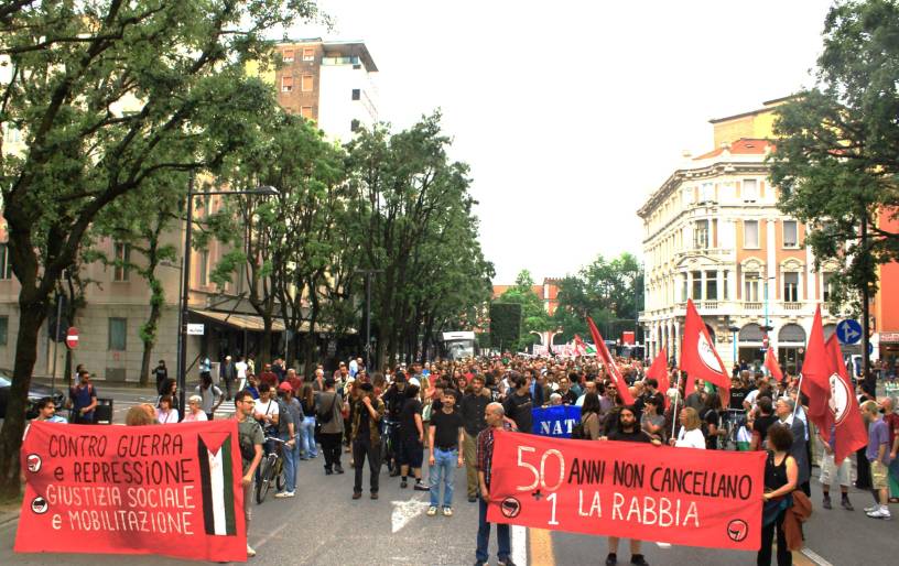A 51 anni dalla strage fascista, di Stato e della NATO, oltre alla solita, ingessata e sempre più indigeribile cerimonia istituzionale (con sindaci e “sindacati”, con autorità e politici professionisti, ecc.) che ovviamente hanno parlato di “difesa delle istituzioni democratiche” e via con i soliti triti e ritriti discorsi soporiferi (unica interessante novità la presenza di una delegazione irlandese legata alle stragi, sempre del Maggio 1974, tra Dublino e Monaghan, compiute da paramilitari unionisti e servizi segreti di Londra) ci sono state due iniziative “alternative”, eredi di quelli che, in quella piazza, c’erano proprio per rovesciare quelle istituzioni, per creare una società completamente diversa, una società, dicevamo allora, socialista (e a cui si ispiravano probabilmente molti dei caduti e dei feriti, a cominciare dai due militanti di Avanguardia Operaia Giulietta Banzi e Luigi Pinto). In mattinata un corteo, partito da Piazzale Battisti (storico luogo di concentramento delle manifestazioni studentesche), di circa 300 compagn*, organizzato soprattutto dall’area del Mag47 e dalla Confederazione COBAS (ma in cui c’erano un po’ tutte le “anime” della sinistra d’opposizione, seppur a ranghi ridotti) ha raggiunto la piazza verso le 10, in tempo per il rito dei rintocchi di campana, ascoltati in silenzio e seguito da un lungo applauso dei circa 2 mila presenti. Il corteo è proseguito poi per il Carmina, dove ha occupato Palazzo Gambara in via delle Battaglie 55, un palazzo storico già occupato dai movimenti bresciani alla fine degli anni ’80, sgomberato dalla polizia nel gennaio 1990 e da allora rimasto vuoto, nonostante la gravissima crisi abitativa cittadina. Un palazzo che, sulle piattaforme immobiliari online, viene “proposto” in vendita per 1 milione e 700 mila euro. L’occupazione arriva a poche ore dal voto di fiducia alla Camera sul DL Sicurezza, che colpisce, tra le altre cose, anche la lotta per il diritto all’abitare. In serata, alle 18,30 circa, un altro corteo è partito dalla Stazione. Organizzato dal Coordinamento contro il decreto repressione (ma a cui hanno partecipato, come al mattino, un po’ tutt* le organizzazioni dell’estrema sinistra, compres* quell* che, per motivi di lavoro, non avevano potuto partecipare in mattinata) ha percorso il ring fino in Piazza Garibaldi, dove molti dei 500 partecipanti, i meno giovani, hanno scelto di andare in Piazza Loggia direttamente, probabilmente un po’ affaticati dalla lentezza del corteo, caratterizzato da molte pause con intermezzi musicali. Il resto del corteo alternativo si è poi recato in Contrada del Carmine per terminare in Piazza Loggia. Una particolarità del secondo corteo, oltre a quella della musica, è stata quella di voler essere una specie di comizio itinerante (una dozzina gli interventi), anche se l’ora (tipica ora di cena di un giorno feriale a Brescia) ha limitato di molto i potenziali interlocutori. I contenuti, oltre all’antifascismo militante non istituzionale, sono stati in particolare la lotta contro il decreto fascistizzante in discussione in Parlamento e la lotta contro le guerre in corso, a partire dal genocidio commesso a Gaza dal governo Netanyahu. La manifestazione si è sciolta dopo le 21, in Piazza Loggia.