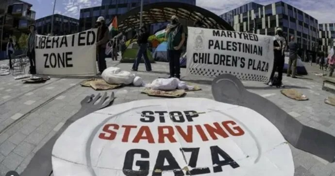 Labor for Genocide” e “Stop Starving Gaza”, i manifestanti hanno chiesto la fine della collaborazione con