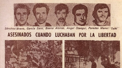 Tornando al 27 settembre 1975, in quel giorno infausto tre militanti del Frente Revolucionario Antifascista y Patriota (José Humberto Baena, Ramón García e José Luis Sánchez) vennero giustiziati in una caserma di Hoyo de Manzanares (Madrid). Un altro basco, Ángel Otaegui Echeverría, nel carcere di Burgos. Mentre il Txiki fu ucciso nei pressi di un cimitero a nord di Barcellona.