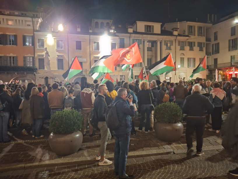Appena giunta la notizia dell’assalto della marina israeliana contro la Sumud Flottilla, avvenuto in acque internazionali (ma nessuno con un minimo di sale in zucca aveva mai creduto al “rispetto della legalità internazionale”) centinaia di bresciani, giovani e meno giovani, si sono concentrati in piazza Duomo per manifestare il loro rifiuto dell’aggressione sionista (certo, molto più soft di quella che subiscono gli abitanti di Gaza). Slogan, bandiere, qualche intervento al megafono, capannelli per decidere il da farsi l’indomani. E si è deciso di ritrovarsi di nuovo dalle 10 di domattina al gazebo in Piazza Duomo, e alle 18 di organizzare un corteo a partire da Piazza Loggia. In attesa dell’evento più importante: lo sciopero generale unitario, proclamato da CGIL e dai sindacati di base per venerdì 3. Per una Palestina libera da TUTTE le oppressioni, laica, non-etnica, socialista!