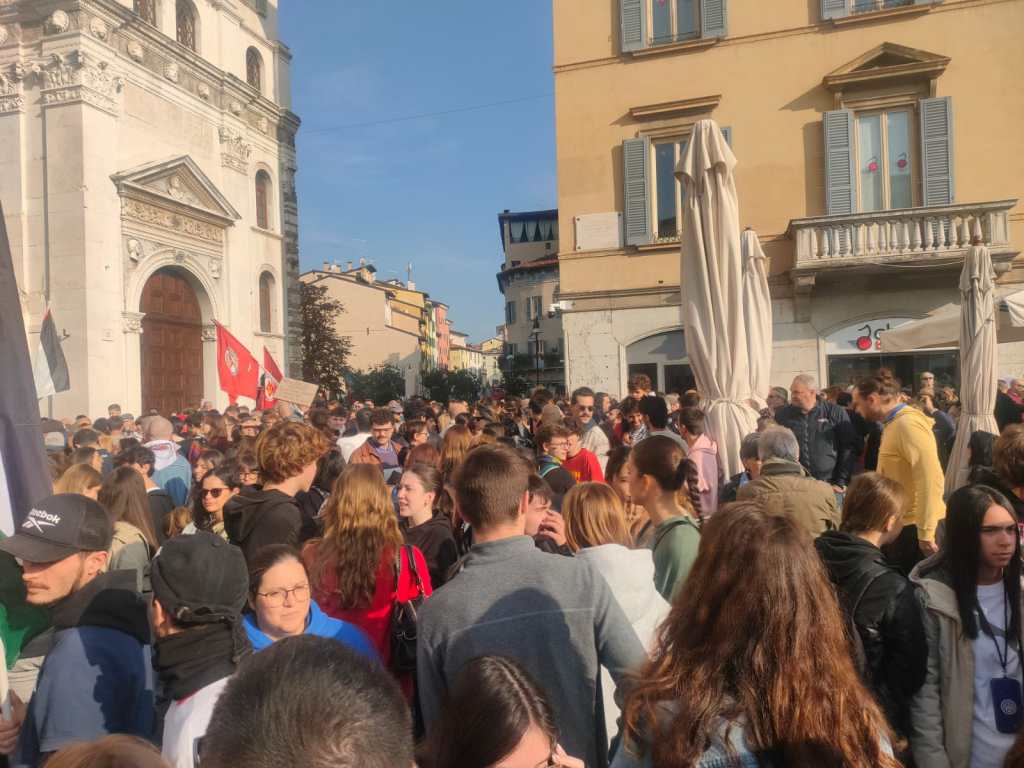 Trentamila: questa è la cifra dei manifestanti che girava in tarda mattinata a Brescia. Difficile dire se sia corretta, viste le dimensioni. Qualcuno ha parlato addirittura di 50 mila. Quando sono arrivato in fondo a via San Faustino, stamattina alle 9,30 ed ho visto che già in piazza Rovetta c’era pieno di gente, con centinaia di bandiere rosse (oltre alle onnipresenti bandiere palestinesi e della pace), ho capito che piazza Loggia aveva esaurito lo spazio, cosa che non succedeva da molti decenni. Nella mia memoria sono dovuto tornare al maggio 1974, dopo la strage fascista e di Stato, per avere la stessa impressione. Neppure le enormi manifestazioni contro il primo attacco alla scala mobile del 1983/84 e contro il definitivo affossamento della stessa nel 1992/93 avevano queste dimensioni. E credo (visto che in quegli anni non ero in Italia) che neppure quelle del Brescia Social Forum del 2001/2003 fossero così nutrite. Il gigantesco corteo che ha percorso la città stamane, e che ha bloccato la tangenziale, con tutti i sindacati degni di questo nome, ha stupito un po’ tutt*, a partire dal sottoscritto. Si vedeva che la marea stava montando nelle ultime settimane, ma non pensavo fosse così rapida e così alta. Ci sarà da riflettere sul perché centinaia di migliaia (se non milioni) di persone sono scese in sciopero e in piazza proprio a partire da qualcosa che, apparentemente, è lontano dai propri interessi immediati (ai miei tempi di sarebbe detto “tradeunionisti”). L’indignazione crescente di fronte ad un vergognoso genocidio trasmesso in tempo reale (cosa che non avveniva per la guerra del Vietnam, per fare un paragone che viene spontaneo) è certamente la scintilla che ha dato fuoco alle polveri, e l’attacco pirata della marina sionista alla flottiglia ha ulteriormente fatto crescere la rabbia. Ma sicuramente c’è qualcosa di più profondo, di più radicale per i tantissimi giovani e meno giovani che hanno riempito le strade di Brescia e di tutte le altre città in Italia e in molti altri paesi. Il disagio sociale, la rabbia di fronte a una palese ingiustizia, la stessa durezza delle forme di lotta (occupazione di stazioni e autostrade, in spregio al decreto repressione ex 1660) che spinge molti a mettere in discussione TUTTE le ingiustizie, è da sempre il motore delle rivolte di massa. La “capa” del governo, con la sua greve ironia da osteria, ha parlato, se non erro, di “rivoluzione” da week-end lungo. Non faccia tanto la spiritosa da quattro soldi, perché il suo sorrisetto arrogante da donna di potere potrebbe trasformarsi prima o poi in un ghigno di disgusto e timore. Sappiamo benissimo che la strada per far maturare, in un movimento per certi versi così acerbo e con poca o nulla esperienza politica, la consapevolezza della necessità di andare oltre la semplice (e giustissima) indignazione contro una delle tante ingiustizie (forse la più eclatante in questi ultimi due anni) è ancora lunga. Per fare i necessari passi verso la comprensione che, alla radice di questa e delle altre ingiustizie, c’è quella che Marx chiamava “l’ingiustizia assoluta”: quella dello sfruttamento dell’essere umano da parte di un altro essere umano. Solo se questa consapevolezza diverrà diffusa a livello di massa, con tutte le conseguenze politiche ed organizzative, la battuta della Meloni si trasformerà, per lei e i suoi sodali (e per i suoi burattinai) in un incubo. Ma come diceva qualcuno: ben scavato, vecchia talpa!