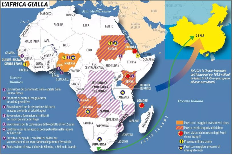 Un altro esempio è la ferrovia elettrificata Gibuti-Addis Abeba, costruita e finanziata dalla Cina, come tassello di una sequenza di progetti che legano l’entroterra a porti e corridoi. Quel corridoio è la versione materiale di un’idea: ridurre frizioni di trasporto e aumentare dipendenze reciproche. Ma le dipendenze non sono mai “neutre”. Se la logistica è la circolazione della linfa economica, chi controlla i colli di bottiglia controlla anche le crisi.