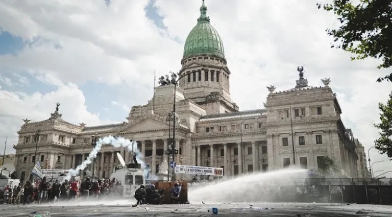 Proprio l’altro ieri, giovedì 12 febbraio, il governo argentino di estrema destra di Javier Milei ha ottenuto un’altra vittoria parlamentare, quando il senato ha approvato in via preliminare il disegno di “riforma del lavoro”, tra acute proteste di piazza, che hanno provocato molti feriti e circa 30 arresti. Con 42 voti favorevoli e 30 contrari, i senatori hanno approvato un’iniziativa che smantella le leggi sul lavoro in vigore dal 1974. L’obiettivo dichiarato del governo è quello di “porre un argine alle numerosissime vertenze sindacali e al lavoro nero informale (che, secondo l’istituto di statistica nazionale ha raggiunto la percentuale record del 43%)”. Lo strumento per limitare questi fenomeni intrinseci all’economia neoliberale è sostanzialmente quello di legittimare il lavoro nero, peggiorando drasticamente le condizioni di lavoro dei lavoratori argentini. Dopo aver ricevuto l’approvazione del Senato, la riforma del lavoro passa ora alla Camera dei Deputati per l’approvazione definitiva. Pubblichiamo qui sotto la cronaca della giornata di lotta che ha preceduto l’approvazione, tratta dal sito “Lavaca” (Redazione).