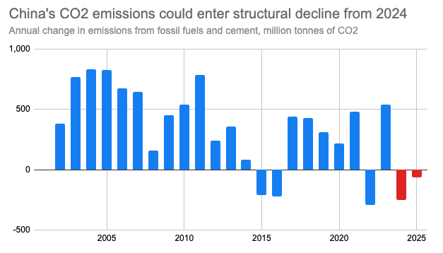 Ciò prolunga un trend di calo nelle emissioni di CO2 della Cina iniziato a marzo 2024 e che dura ormai da quasi due anni.