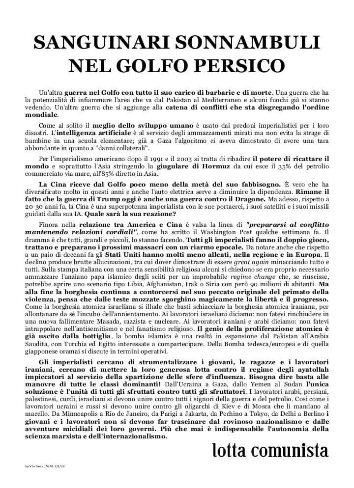 sinistra GUERRA IN MEDIO ORIENTE: ALTRE PRESE DI POSIZIONE Date: 4 marzo 2026Author: Brescia Anticapitalista 1 Commenta Scopri di più da Brescia Anticapitalista Abbonati per ricevere gli ultimi articoli inviati alla tua e-mail. Digita la tua e-mail... Iscriviti Condividi: Condividi su X (Si apre in una nuova finestra) X Condividi su Facebook (Si apre in una nuova finestra) Facebook Invia un link a un amico via e-mail (Si apre in una nuova finestra) E-mail Mi piace Caricamento... Correlati