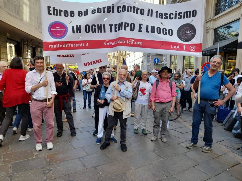 “Oggi come ogni anno un nostro spezzone ebraico ha partecipato al corteo nazionale del 25 aprile a Milano. Lo abbiamo percorso con due striscioni, “ebree ed ebrei contro il fascismo in ogni tempo e in ogni luogo #nopuliziaetnica”, e “cessate il fuoco, voci ebraiche per la pace”.